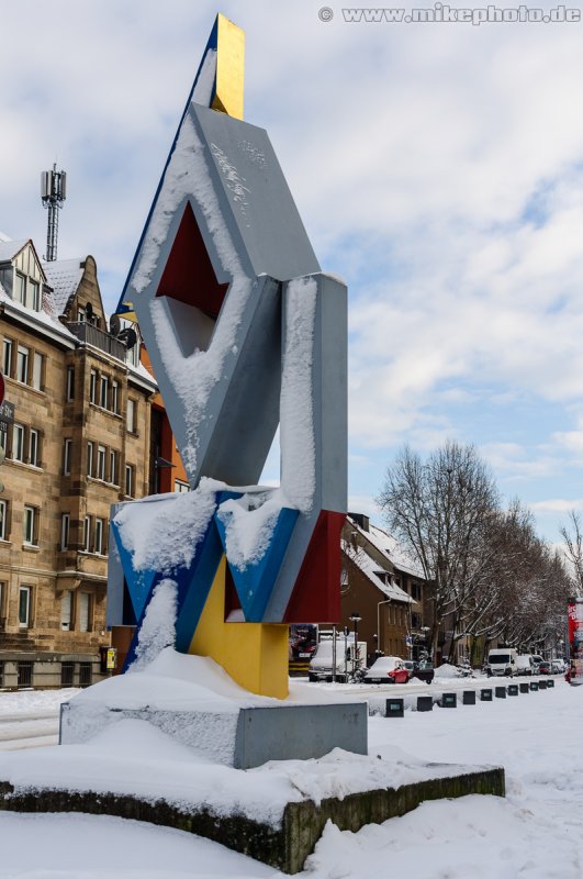 eingeschneite Hajek-Skulptur